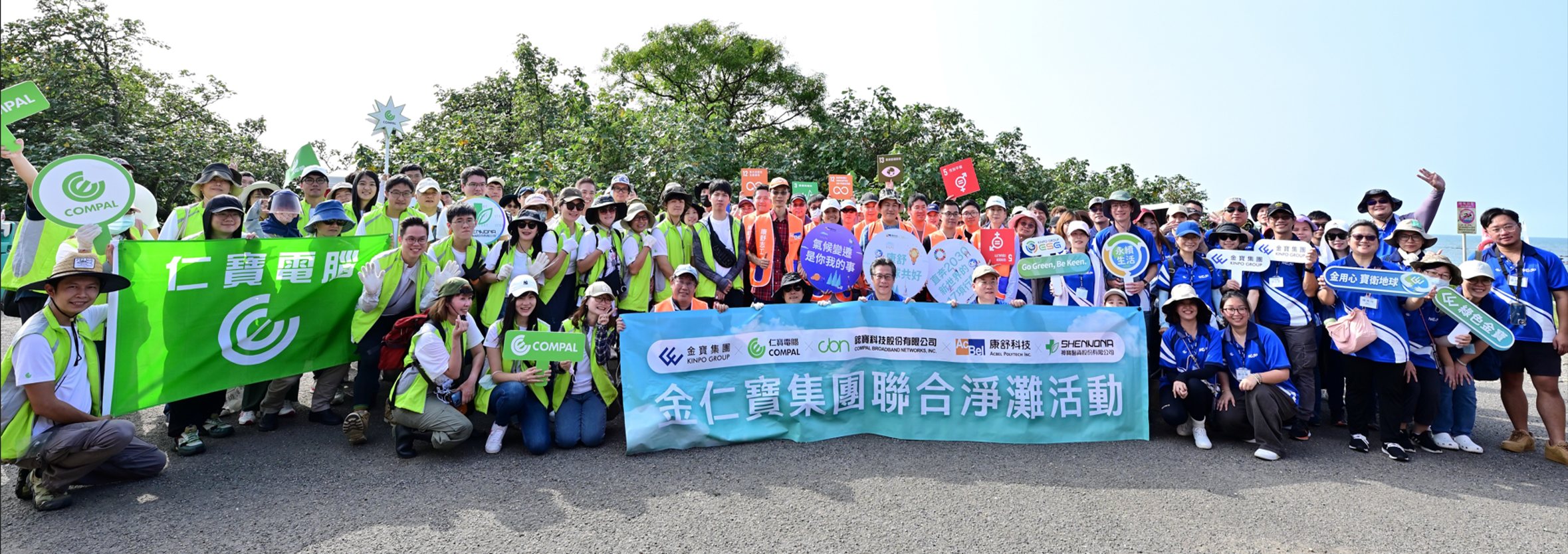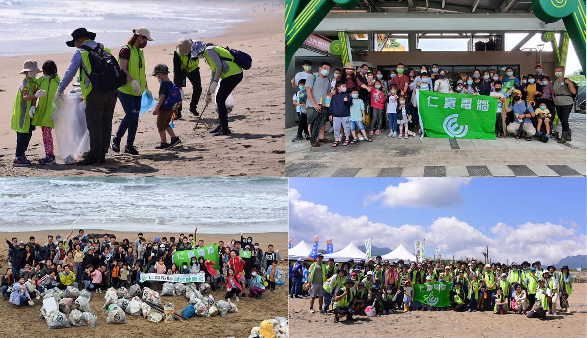 1. 60 Compal employees and their families signed up for the first joint coastal clean-up for Group companies at Zhouziwan in Danshui. More than eighty people took part in the coastal clean-up and removed 387.9 kg of marine waste.