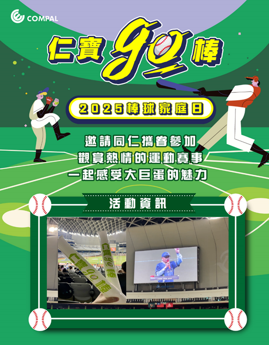 On May 25, 2025, COMPAL Electronics held its Family Day at Taipei Dome for the very first time, inviting COMPAL colleagues and their families to come together in support of baseball.