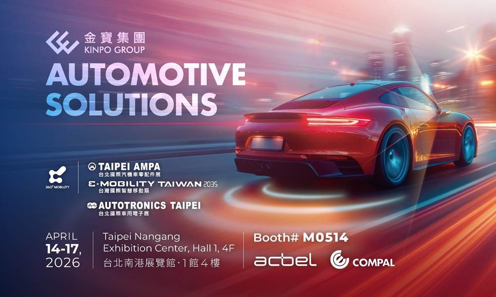 COMPAL & KINPO Group, together with its subsidiaries Kinpo Electronics (2312), AcBel Polytech Inc. (6282), and Compal Electronics (2324), jointly participated in the “Taipei International Automotive Electronics Show (AMPA)” on April 14. Under the theme of the “Smart Automotive Ecosystem,” the group demonstrated its integrated capabilities across automotive electronics, power systems, and in-vehicle applications, showcasing its strategic development in the smart mobility sector.