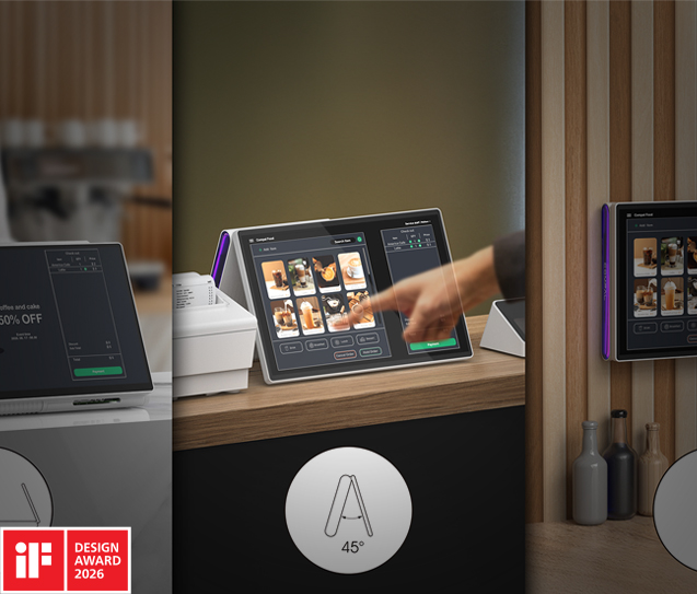 TwinsPOS is the world's first dual-module POS system tailored for tableside checkout in the F&B industry. It features one system unit and one display module. The device folds flat (0°) for hanging on table partitions or stands at 45° for self-service use. Two units can magnetically snap together via POGO PINs to form a dual-sided mode, with one side for staff and the other for customers to view and pay. With its modular design, foldable form, and intuitive interface, TwinsPOS flexibly supports tableside, self-checkout, and counter setups, breaking the space and workflow barriers of traditional systems.
