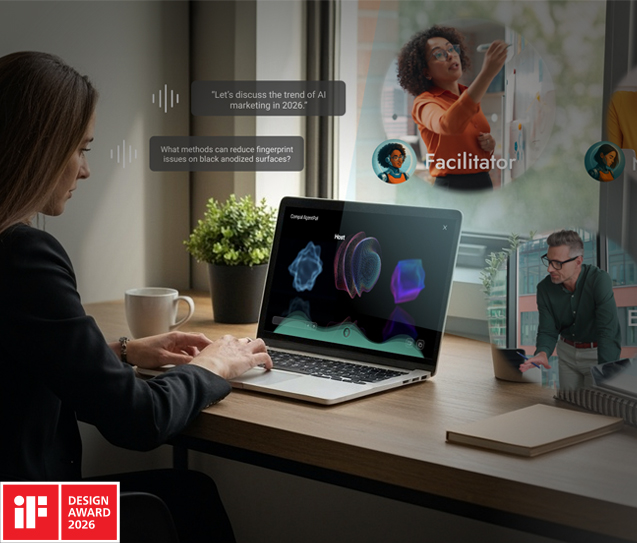 The Horizon laptop seamlessly combines portability with high performance, tailored for on-device generative AI computing. It solves the issue of bulkier laptops due to cooling needs by featuring an innovative hinge design that moves the LCD forward, creating extra airflow space. With a 10% increase in cooling fin surface area and patented Diverging Fan technology, it achieves a 15% improvement in cooling efficiency while reducing the laptop’s volume by 20%. Horizon delivers powerful computing without compromising its slim, lightweight form, enabling users to transition effortlessly between work and mobility.