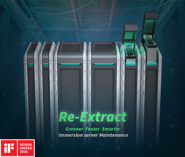 An innovative liquid extraction system for immersion servers maintenance, integrating a vacuum extraction module, collector, and modular design to deliver fast, efficient, and sustainable workflow. Residual server coolant is quickly removed and recycled, reducing contamination and enabling reuse. Light cues ensure precise operation even in noisy environments. Its modular design supports varies server sizes and doubles as stackable, sustainable container for transportation, enhancing deployment and logistics. Guided by “Efficient Boost” and “Sustain Cycle,” Re-Extract streamlines maintenance while securing sustainability.