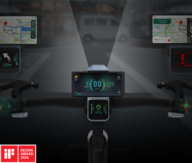 CycleLink SEM is a smart e-bike designed for modern urban riders. Its built-in HMI screen and handlebar controls enable hands-free interaction for safer, more focused rides. Directional haptic feedback delivers turn-by-turn navigation and safety alerts through vibration patterns of varying intensity. A modular system, paired with an AI-powered rear detection radar, identifies the type, size, and distance of approaching vehicles—issuing three-level alerts through distinct vibration patterns and messages. Riders can also use voice commands to access the built-in AI assistant, explore nearby spots, and enjoy a smarter, more personalized ride.